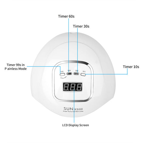 Nail polish dryer can be cured into both 5 fingernails or toenails at the same time, NOT curing thumb separately anymore.