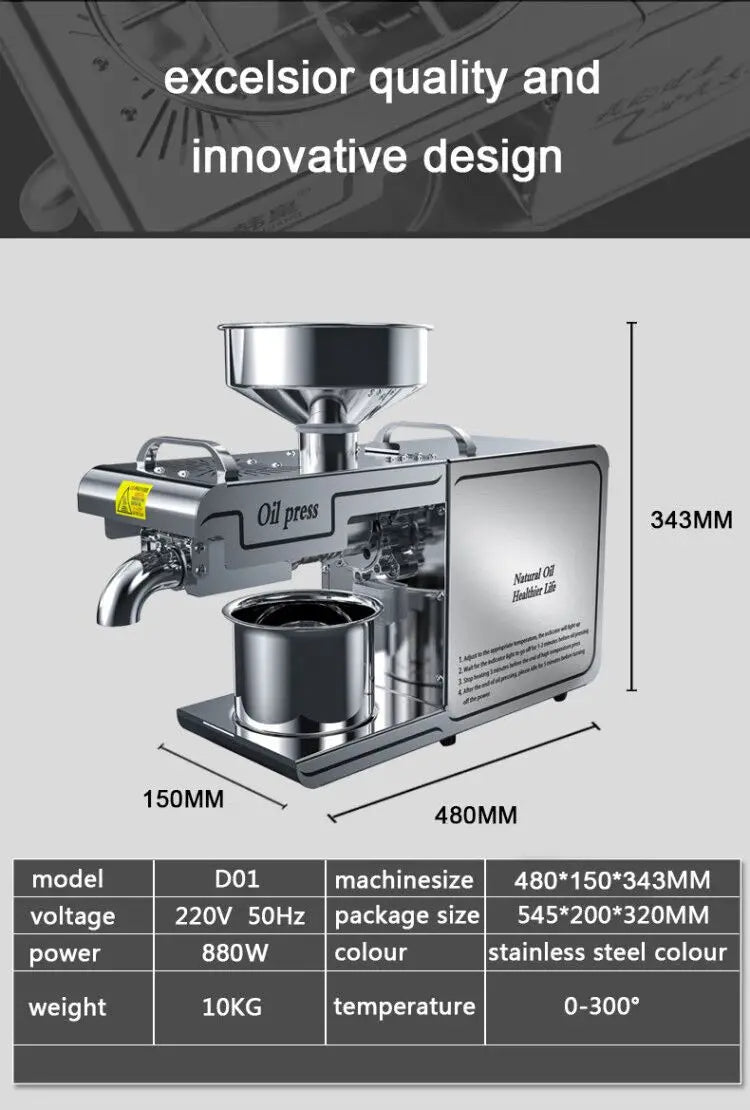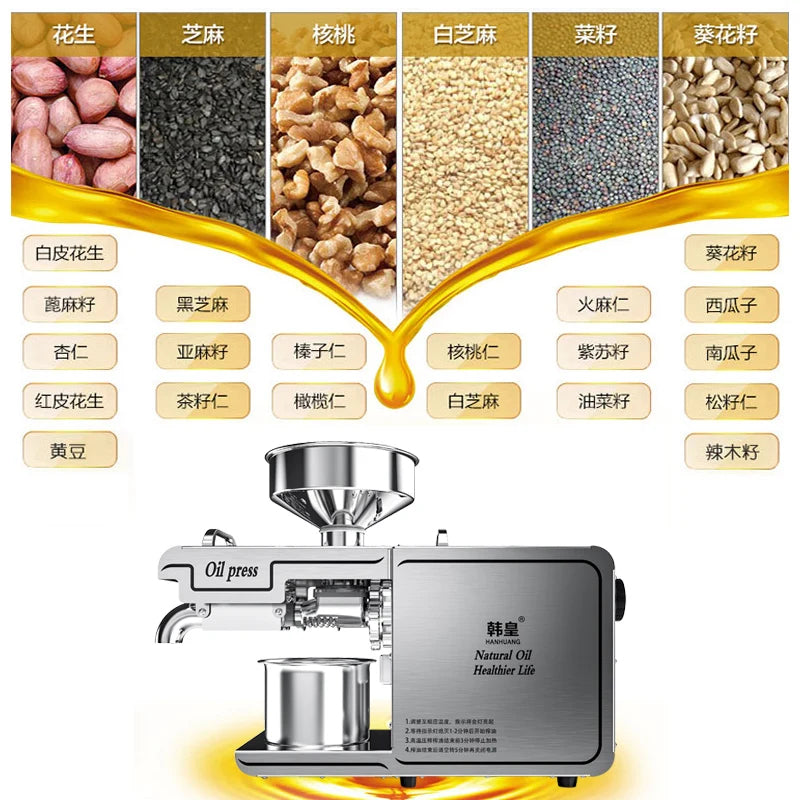 Discover precision and efficiency with our High-Speed Automatic Cold Press Oil Machine. Designed for professional use, this extractor offers a robust 7-11kg/hour capacity, perfect for processing peanut, coconut, and other oils. Featuring advanced temperature control, it ensures optimal extraction conditions for pure, high-quality oil. The cold press technology preserves the natural nutrients and flavor of your oil, making it ideal for both home and commercial use. Enhance your oil extraction process with this reliable and high-performance machine.