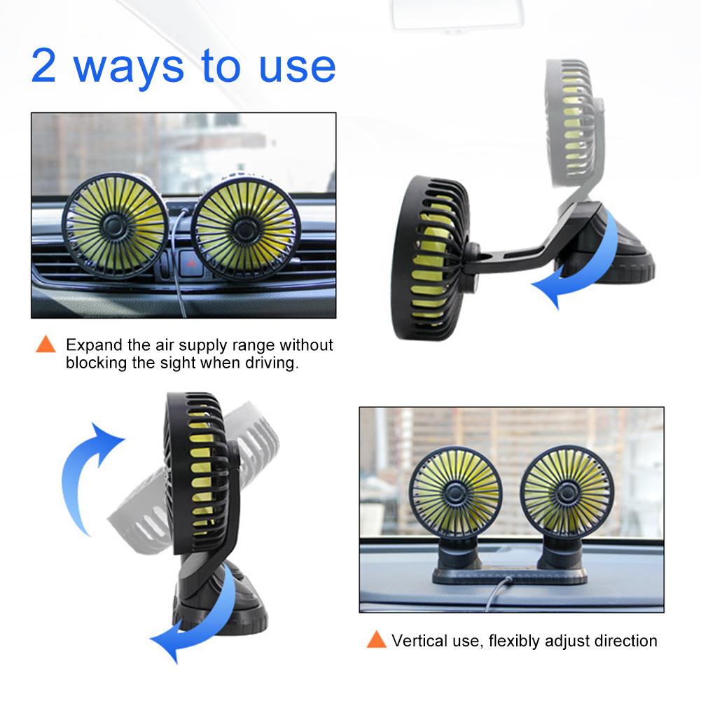 【Car Dual-head Fans】Car Fan Dual-head Fans Cooler Large-angle Rotation Dashboard USB Fans With 3 Speed Levles For 12V/24V Car Interior Accessories