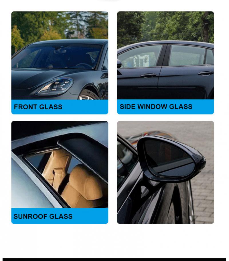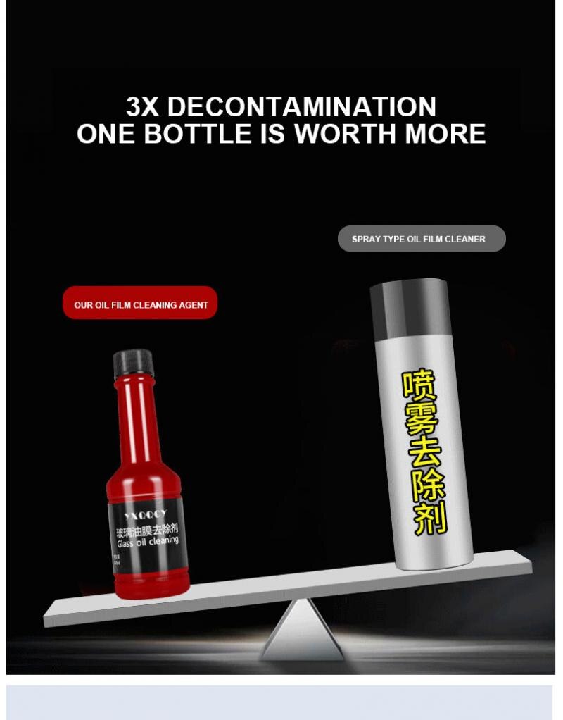 It will not damage the glass to remove the oil film, and the vision will be clearer. The glass is cleaned by spraying and scraping. It is suitable for various glass cleaning, applicable to a wide range of parts, and the corners can also be clear as mirrors. Concentrated and durable, strong to remove the oil film, the active particles to remove the oil film does not damage the glass. It has a wide range of uses, not only for cars, but also for home windows, shop windows, helmets, and glasses.