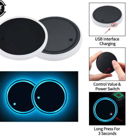 Creative decorative RGB LED car cup holder, makes your car cup holder cool and great, low power consumption.
