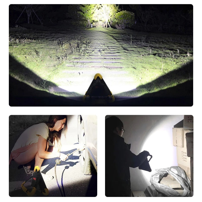 This triangle cob led work light comes with 5 lighting modes, cob strong light/cob weak light/red solid light/red SOS/red warning light. High luminance and emergency warning function make your life more bright and secure.