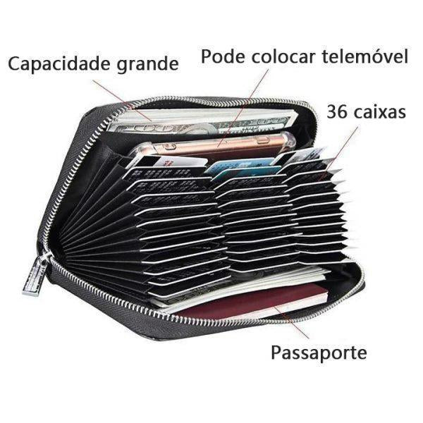 - This wallet opens to reveal 36 card slots to hold all of your most important credit cards, debit cards, rewards cards, and insurance cards, a checkbook holder, and slip pockets to hold cash and receipts.