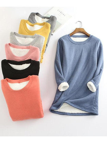 Casual Fleece-blend Round Neck Solid Long Sweatshir