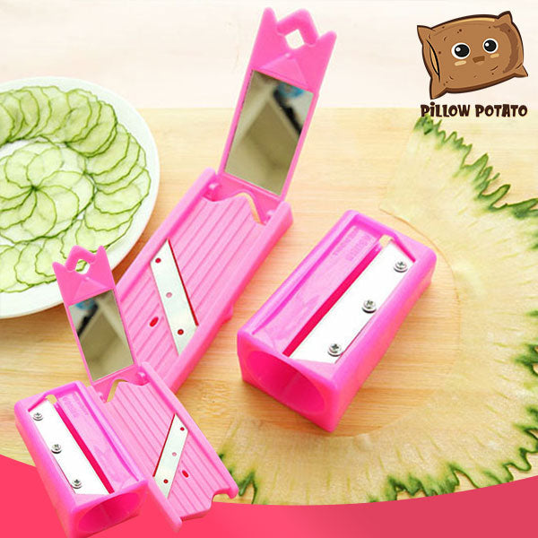 - Sharpener-Style form. All you need is insert any adequately sized cucumber through the hole and rotate just like sharpening a pencil. Perfectly thin vegetable sheets will come out in a matter of seconds!