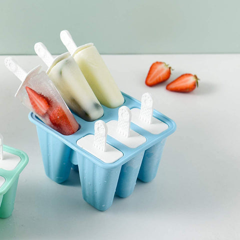 Silicone popsicle molds are in smooth surface,nonstick,easy to release, just pop out with pressed fingers. Using such 6 cavity ice popsicle molds, you can make 6 different tastes at one time.