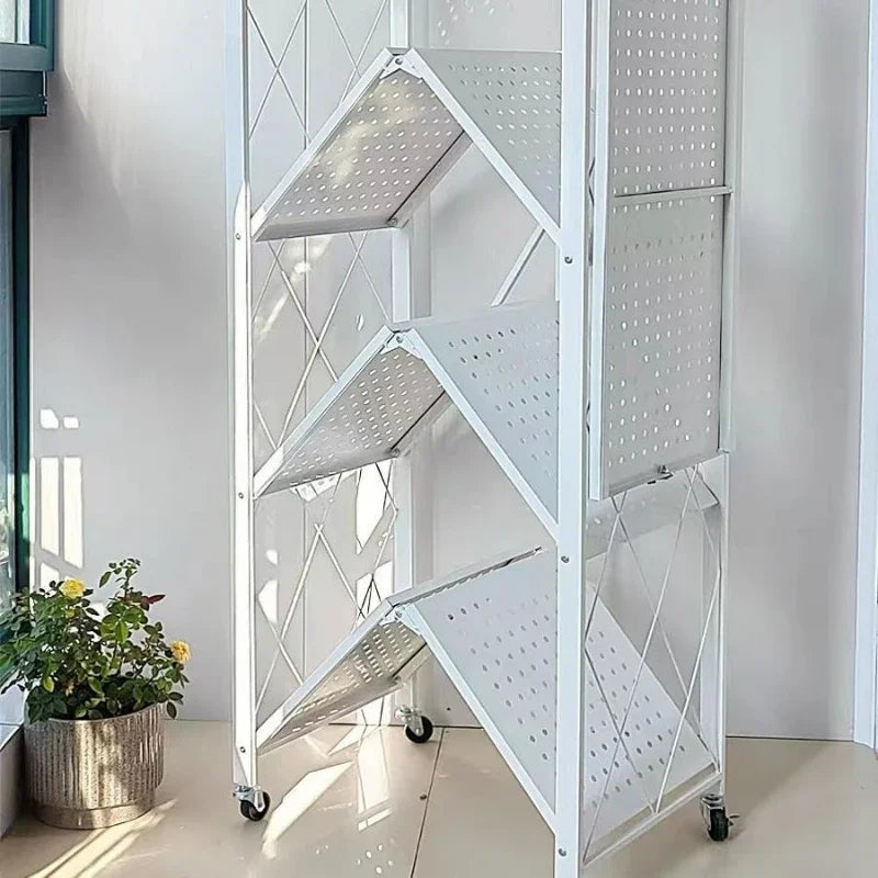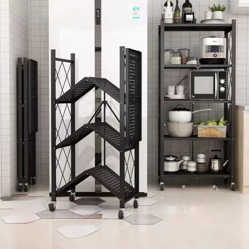 Crafted with lightweight materials, this mobile storage solution effortlessly adapts to your needs, whether it's reorganizing your kitchen essentials or adding extra shelving in your living space. Its foldable design ensures easy assembly and storage, making it a convenient option for any home.