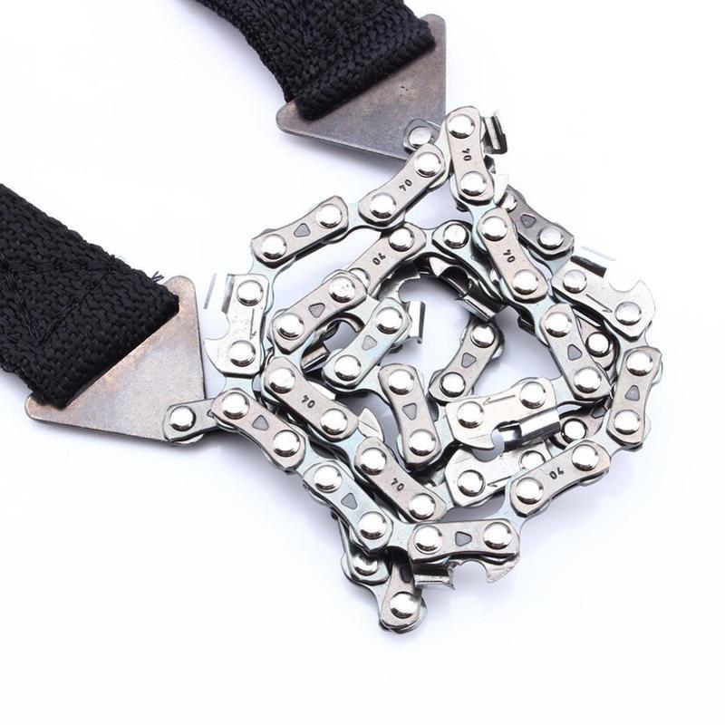 - Virtually Indestructible: The pocket chainsaw is made from hardened steel and is up to 4 times stronger than ordinary steel, making it much stronger than similar chainsaws. Plus, every link of the chain is reinforced with rugged aluminum studs.
