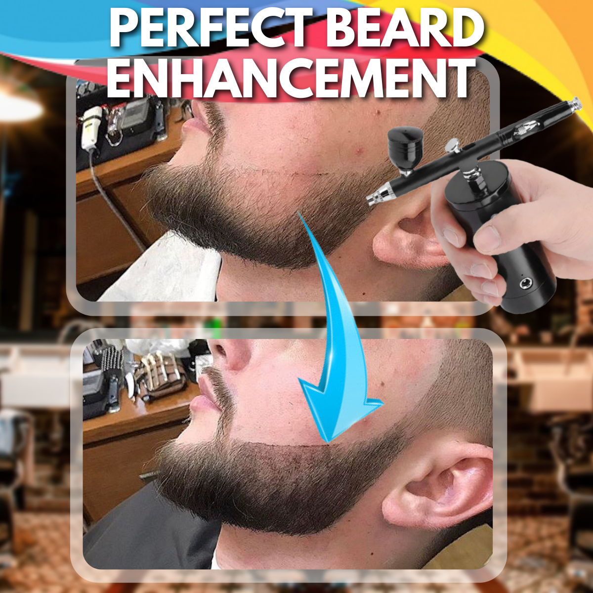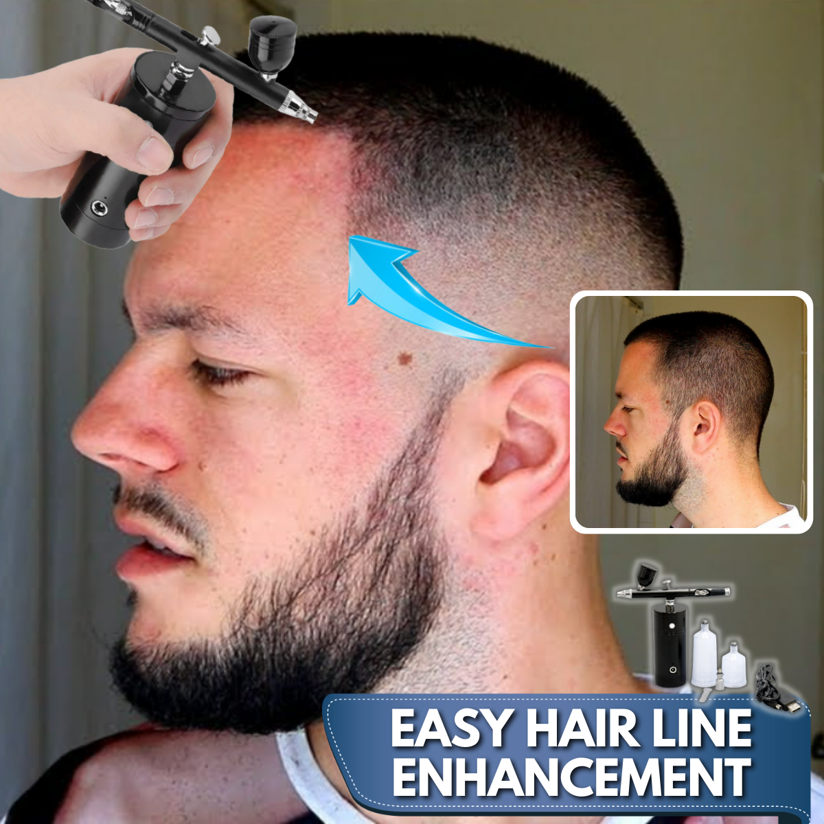 GroomEZ Hairstyling Airbrush Kit allows you to spray hair dye on your hair and beards area for a natural result appearance. Line up enhancement with ease! It is also perfect for grey hairs coverage, makes you look instantly younger!