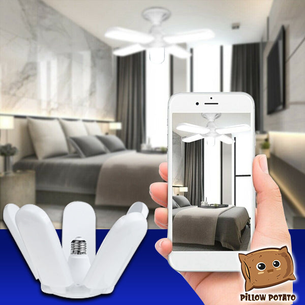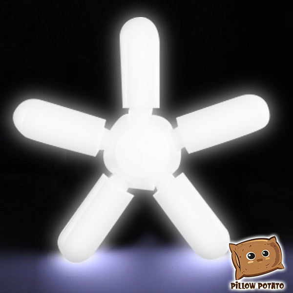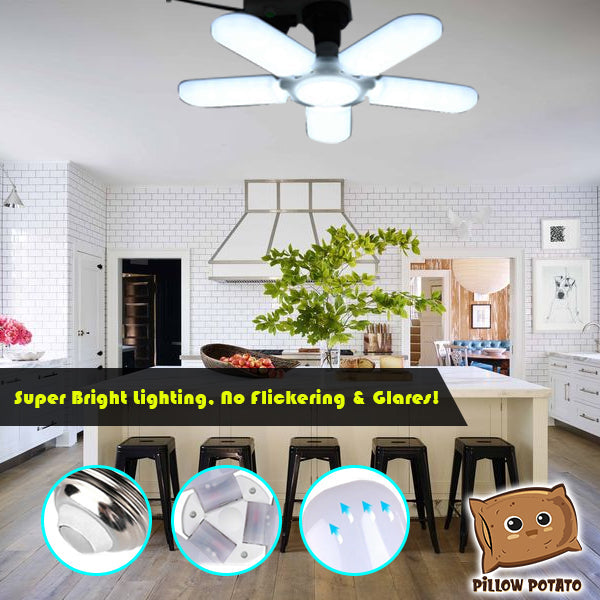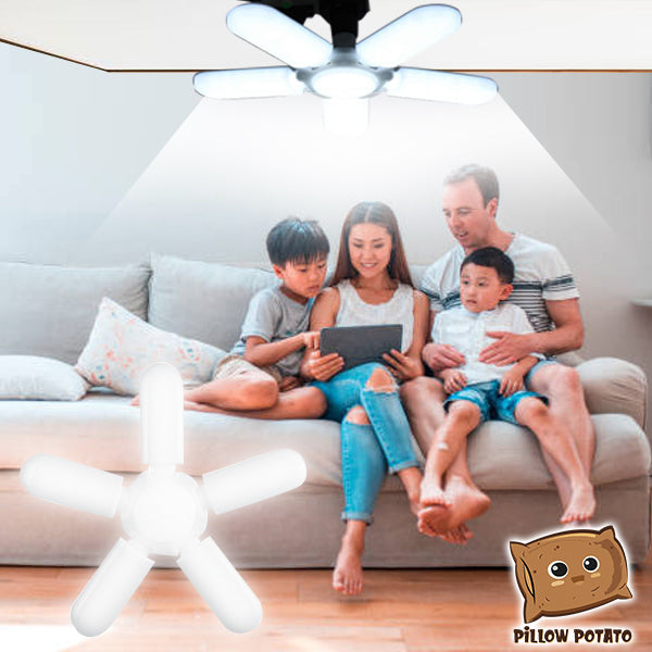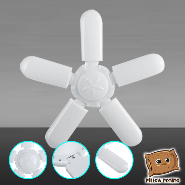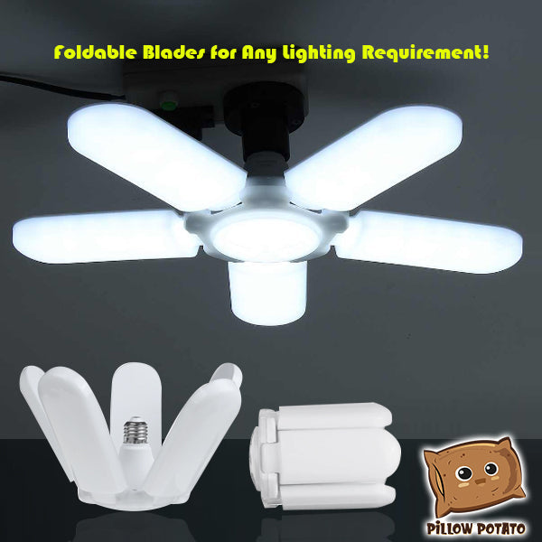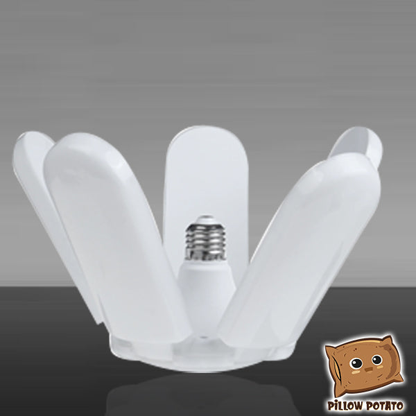 - INNOVATIVE DESIGN – The leaf fan blade design of this bulb can be extended to brighten wide spaces — suitable for garage and warehouse use. And when studying and doing other deskworks, simply fold the blades to focus the light on one area.