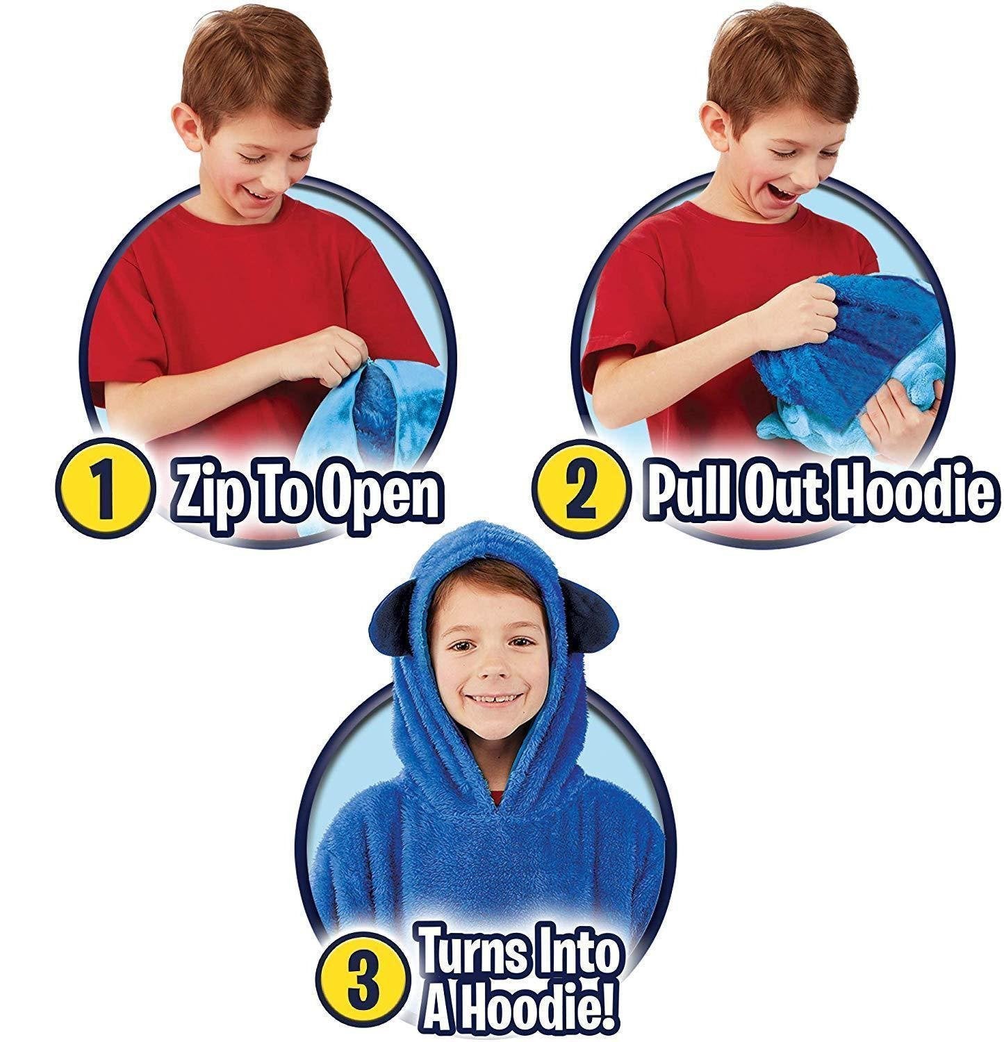 Your kids will stay warm and cozy the fun way with Huggle™ Pets Hoodie! Huggle Pets Hoodie is the fun, new pet that's also a super warm and soft hoodie! It stores as a pet but opens up to an ultra-soft and super warm oversized hoodie! The pet folds magically into the hood and zips securely inside! Perfect for when your kids are playing outside or lounging around the house.