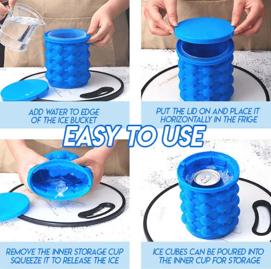 - EASY TO USE AND CLEAN - Add water to the edge of the ice bucket and put it into the refrigerator wait for several hours. If you need more ice cubes, just refill and freeze again for another batch of ice cubes.
