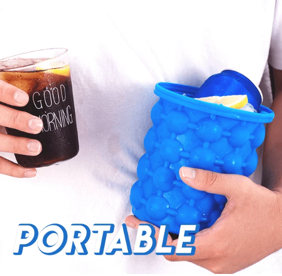 It is portable and easy to use. Just need to fill in water and put in fridge for a few hours. You can have 120 ice and store them into the inner included.