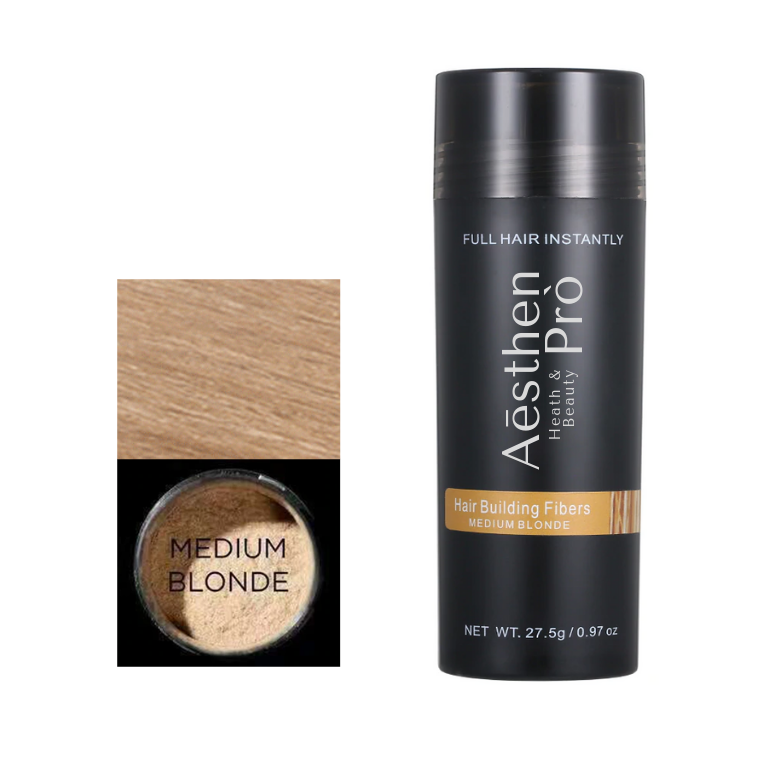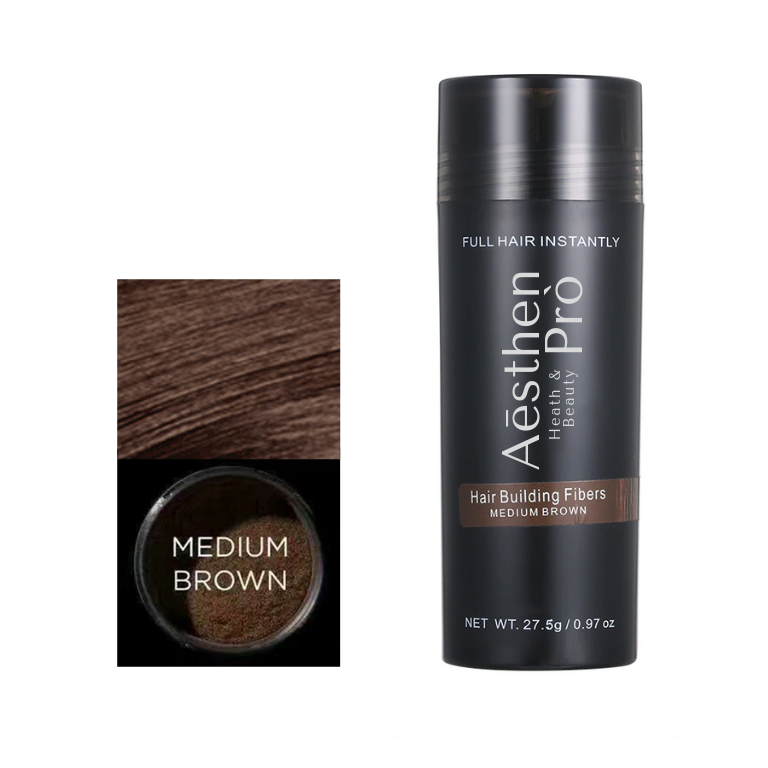 - Aesthen Pro Instant Hair Building Fibers instantly give you the look of thicker, fuller hair. Made of natural, colored Keratin protein that is statically charged, Aesthen Pro Fibers intertwine with your existing hair for a completely natural look. Aesthen Pro resists wind, rain, and perspiration but removes easily with shampoo.
