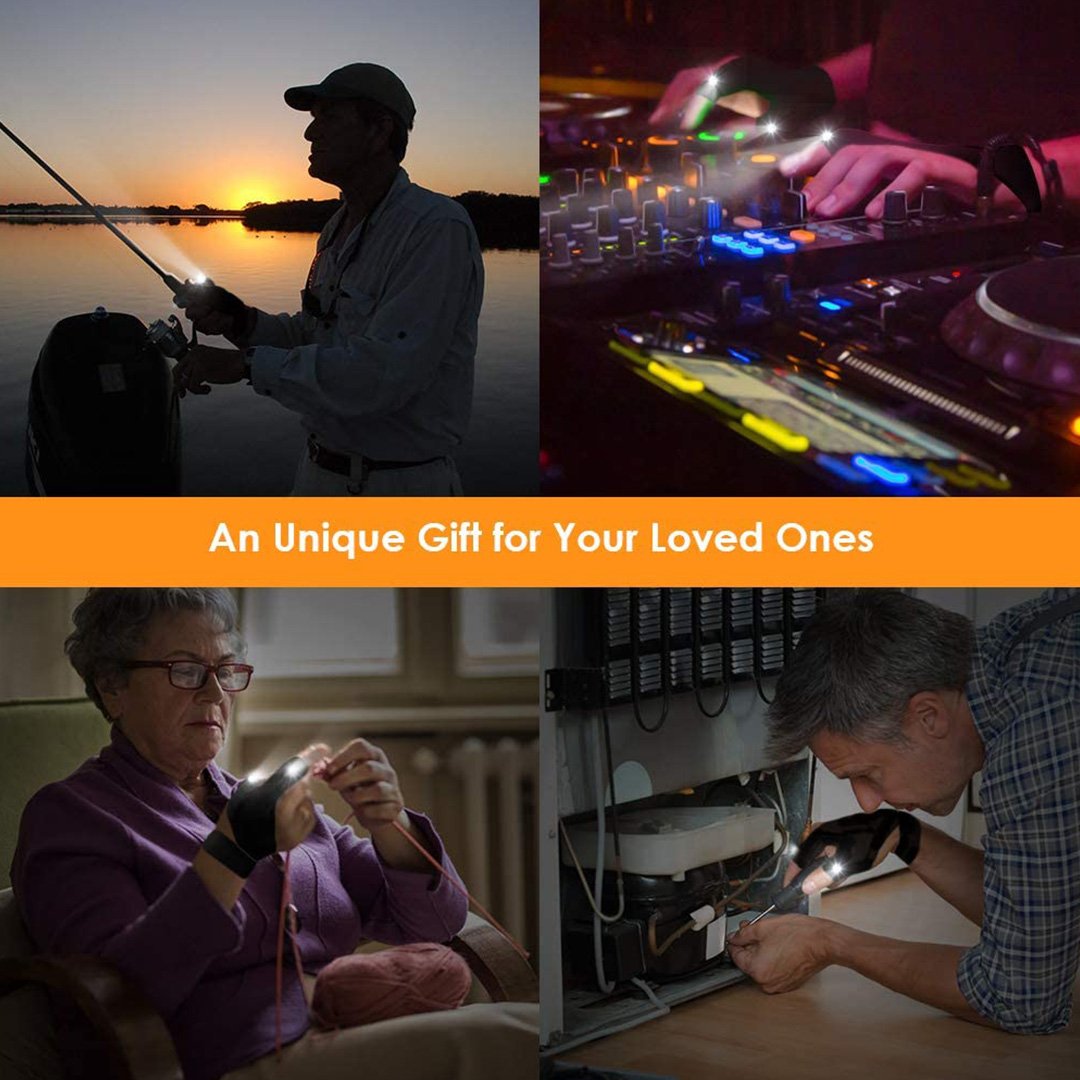 HANDY & CONVENIENT – Humanized hands-free lighting design, finger glove with 2 LED lights on index finger and thumb.