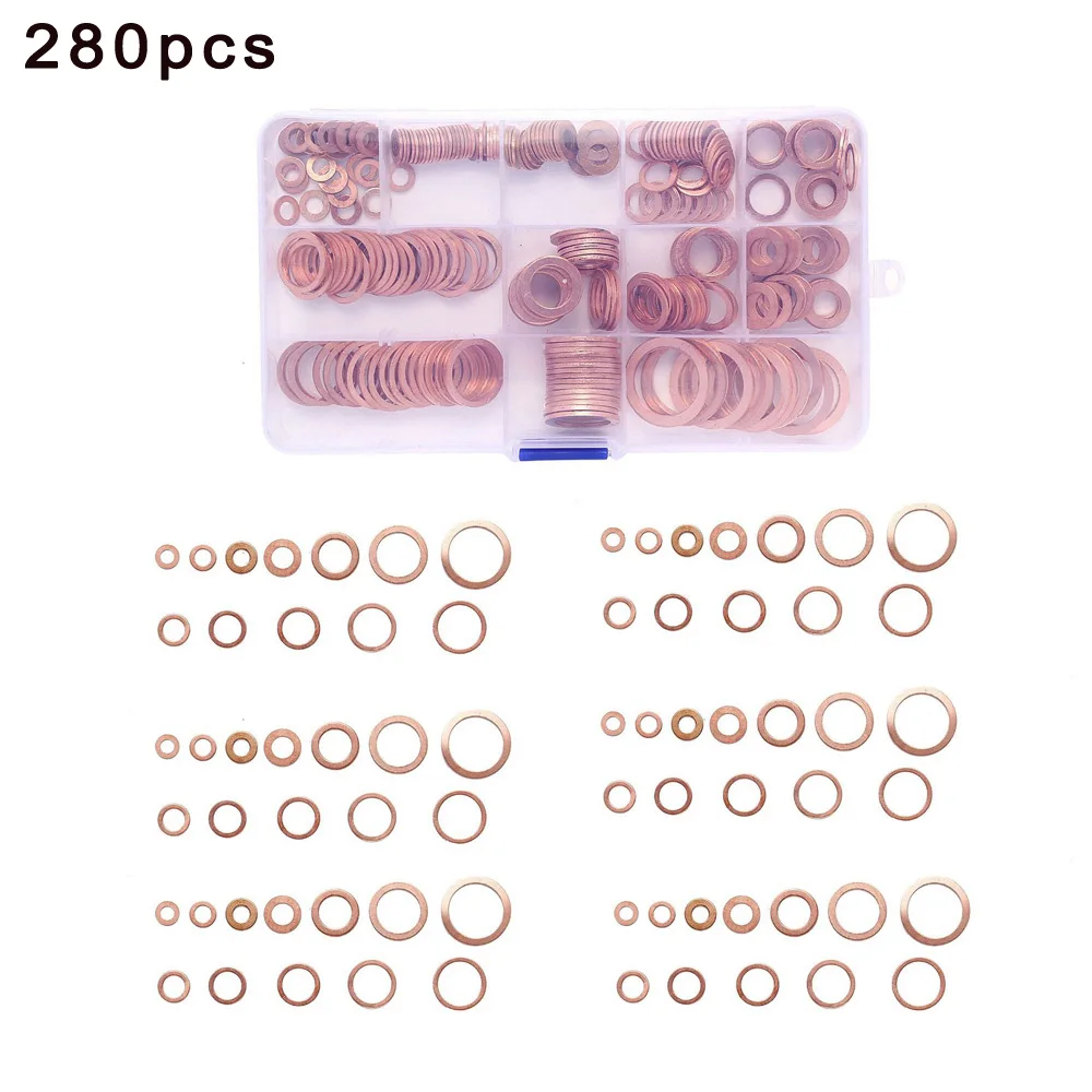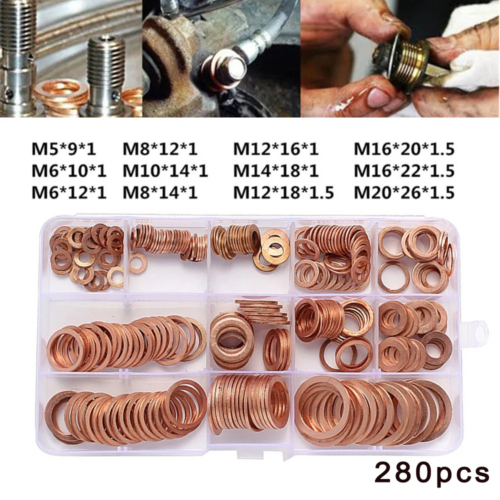 【LH114】Car Drain Bolt Crush Washer Copper Oil Plug Gasket Seal Ring 12 Sizes Copper Gasket Boxed Copper Gasket Combination Oil