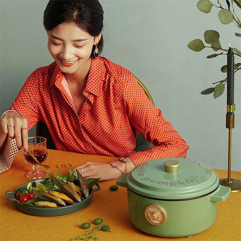 Little Pumpkin Multi Cooker Electric Skillet 2L Non-stick Retro Hot Pot