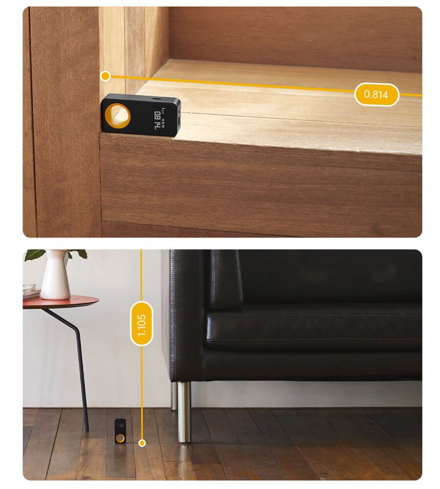 The smart laser rangefinder has only onebutton. Press and hold to start, and thenpress to start measuring. You will defi-nitely notice the "novice-friendly" user ex-perience. The patent "little yellow ring" ismade of rubber paint-soft to the touchand convenient to hold.