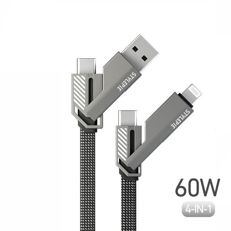 Type-c USB-C Quick Fast Charging data cable cord lightning zinc alloy 60W wire 4in1 for iphone ipad samsung xiaomi charger laptop