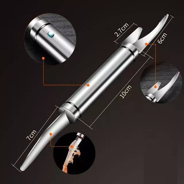 It is specially made for shelling shrimp. Peel the shell quickly, remove the tendons, and enjoy it. It is very suitable for skinning raw and cooked shrimps.