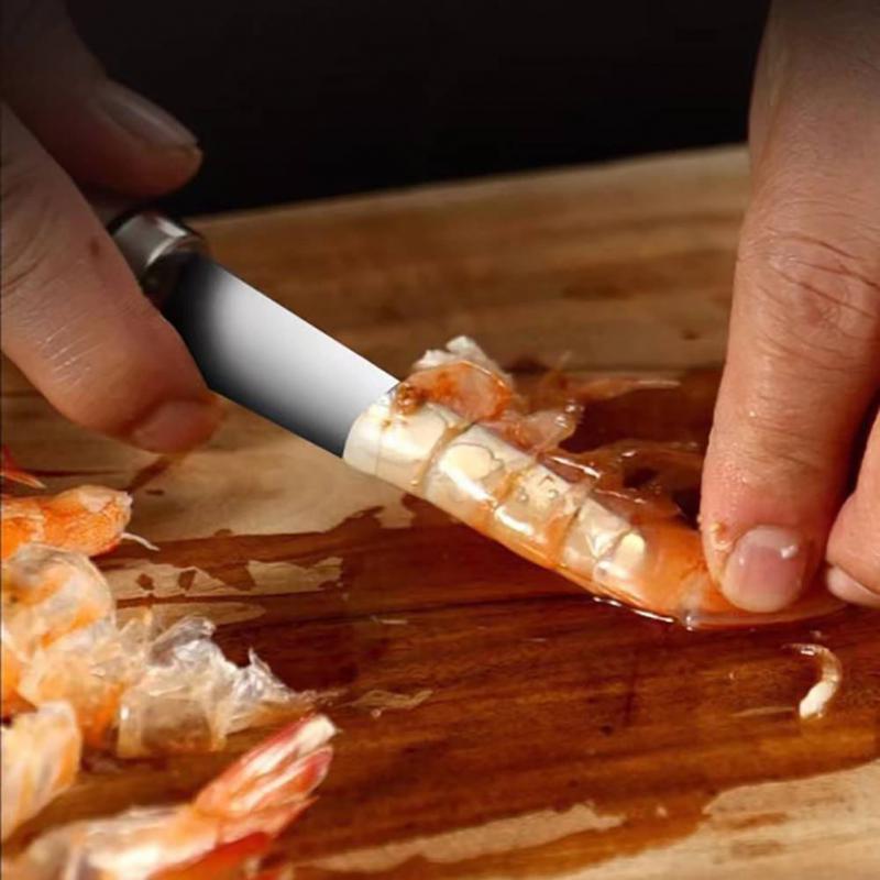 The sharp blade is very suitable for preparing seafood, fish, etc. Peel shrimps quickly and perfectly, open fish maw, remove scales, and peel duck/chicken/pig intestines without damaging them.