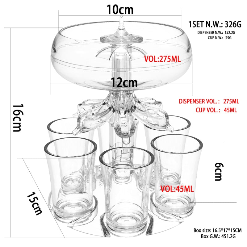 6 Shot Glass Dispenser -Diverse alcohol dispenser bottles shots give the perfect measure each time, neat and elegant way of dispensing. The liquor dispenser is great for holidays, parties bars and home bars. Enjoy your good wine time when you are spare at home.