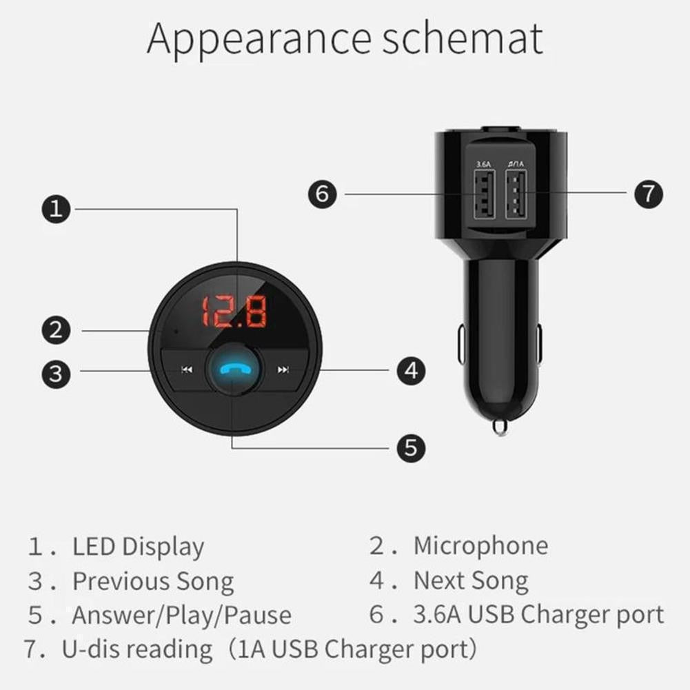 3.6A Quick USB Charger Bluetooth Car Kit FM Transmitter Modulator Audio Carkit Music MP3 Wireless Handsfree Phone Player Auto