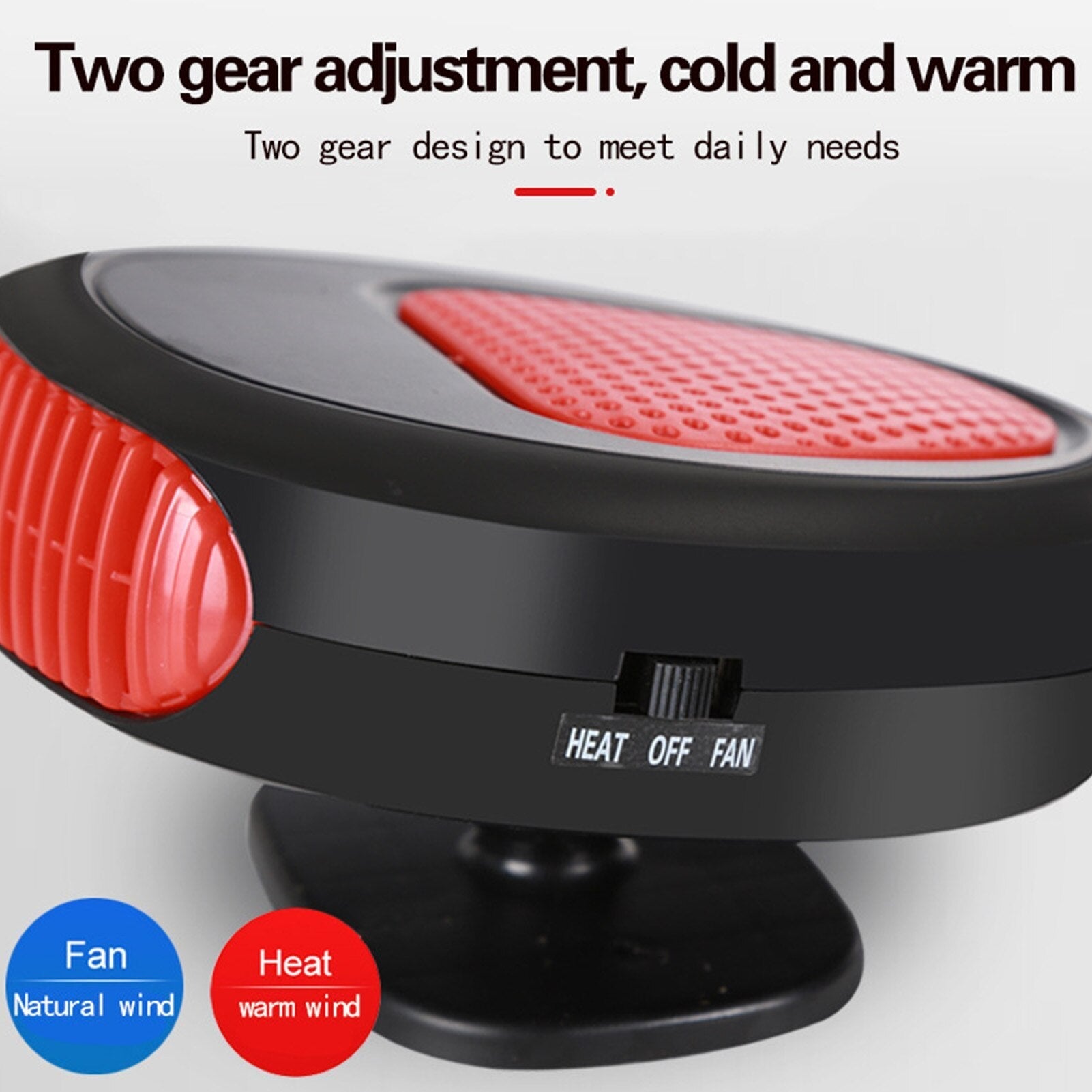 1、Two-in-one Function: This car fan heater can blow natural wind and warm air, and is designed to quickly clean the frost, fog, and fog on the windshield of the vehicle. It is very useful in winter and can also be used as a fan to cool you down in summer.