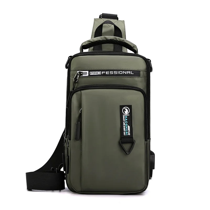 Introducing the ultimate companion for the modern adventurer – our Rugged Explorer Men's Tactical Nylon Waterproof Phone Chest Bag. Crafted with premium waterproof nylon, this versatile bag keeps your essentials safe and dry in any weather condition. With its innovative design, it functions as a phone chest bag, USB crossbody sling bag, backpack, one-shoulder carry, and chest pack pouch, offering unparalleled versatility for the on-the-go man. Whether you're trekking through the urban jungle or exploring the great outdoors, this rugged and stylish bag ensures you're always prepared for your next adventure.