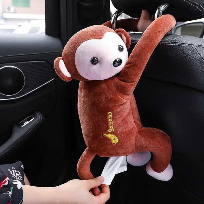 Car Plush Doll Tissue Box With Clothes Monkey Tissue Box Car Accessories Hanging Banana Monkey Car Seat Back Car Decoration