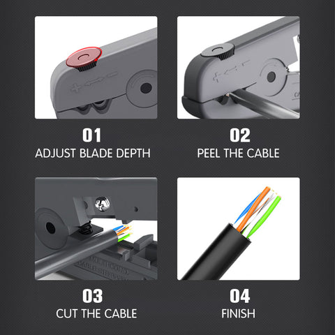 UTP / STP on the glue line〉Easy to adjust the depth of the blade for most round cable.
