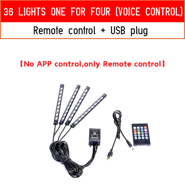 This is about one set of decoration light, including 4 pieces lights one cigarette lighter or usb and one remote control .(ps:app version dose not include remote£©