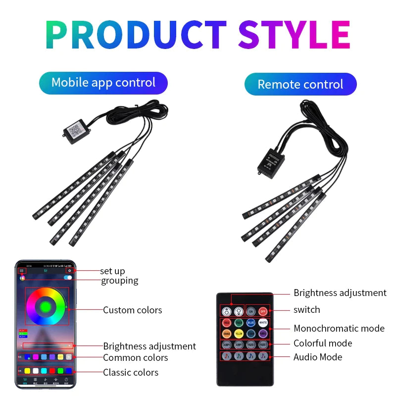 Led Car Foot Ambient Light With USB Cigarette Lighter Backlight Music Control App RGB Auto Interior Decorative Atmosphere Lights