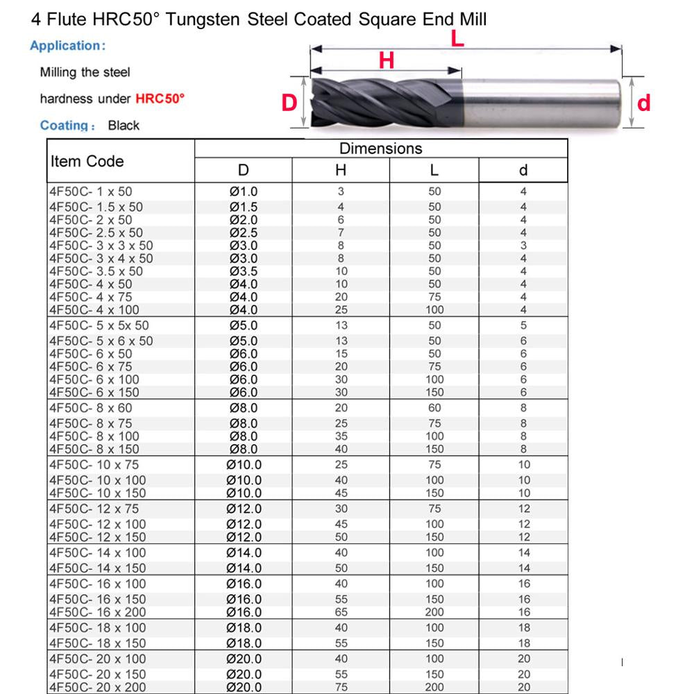 MZG Discount Price Cutting HRC50 4 Flute 4mm 5mm 6mm 8mm 12mm Alloy Carbide Milling Tungsten Steel Milling Cutter End Mill