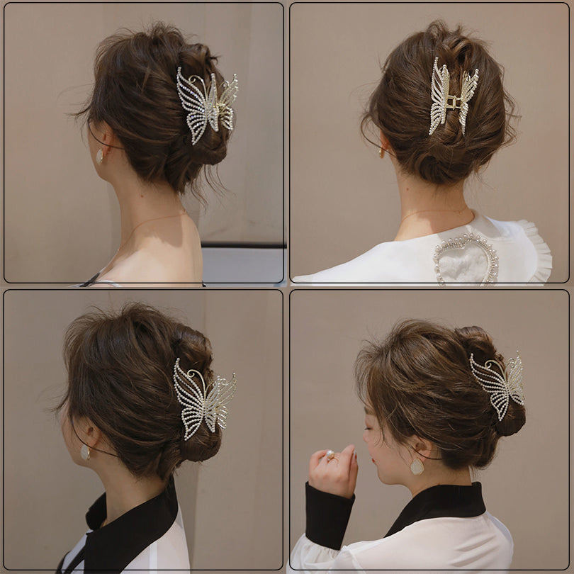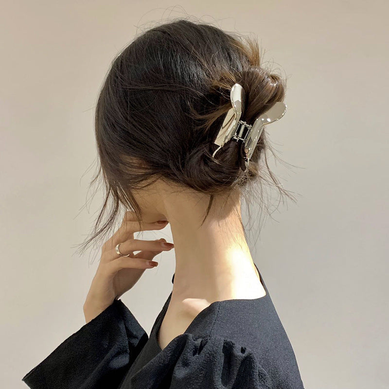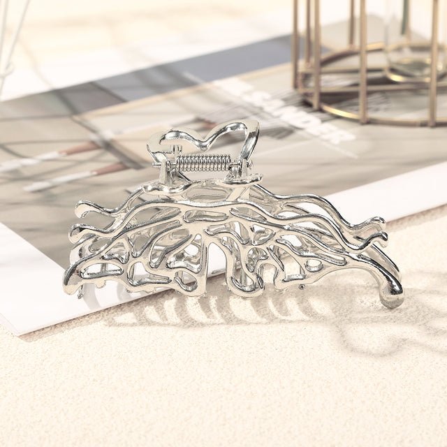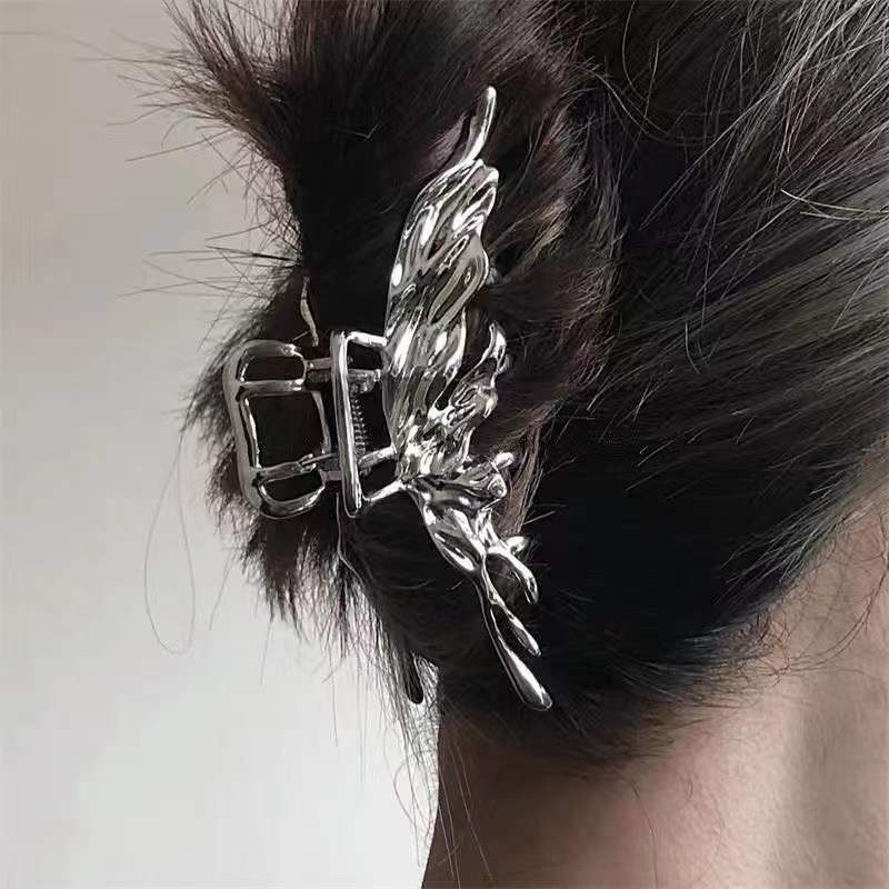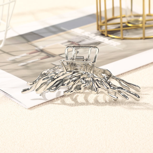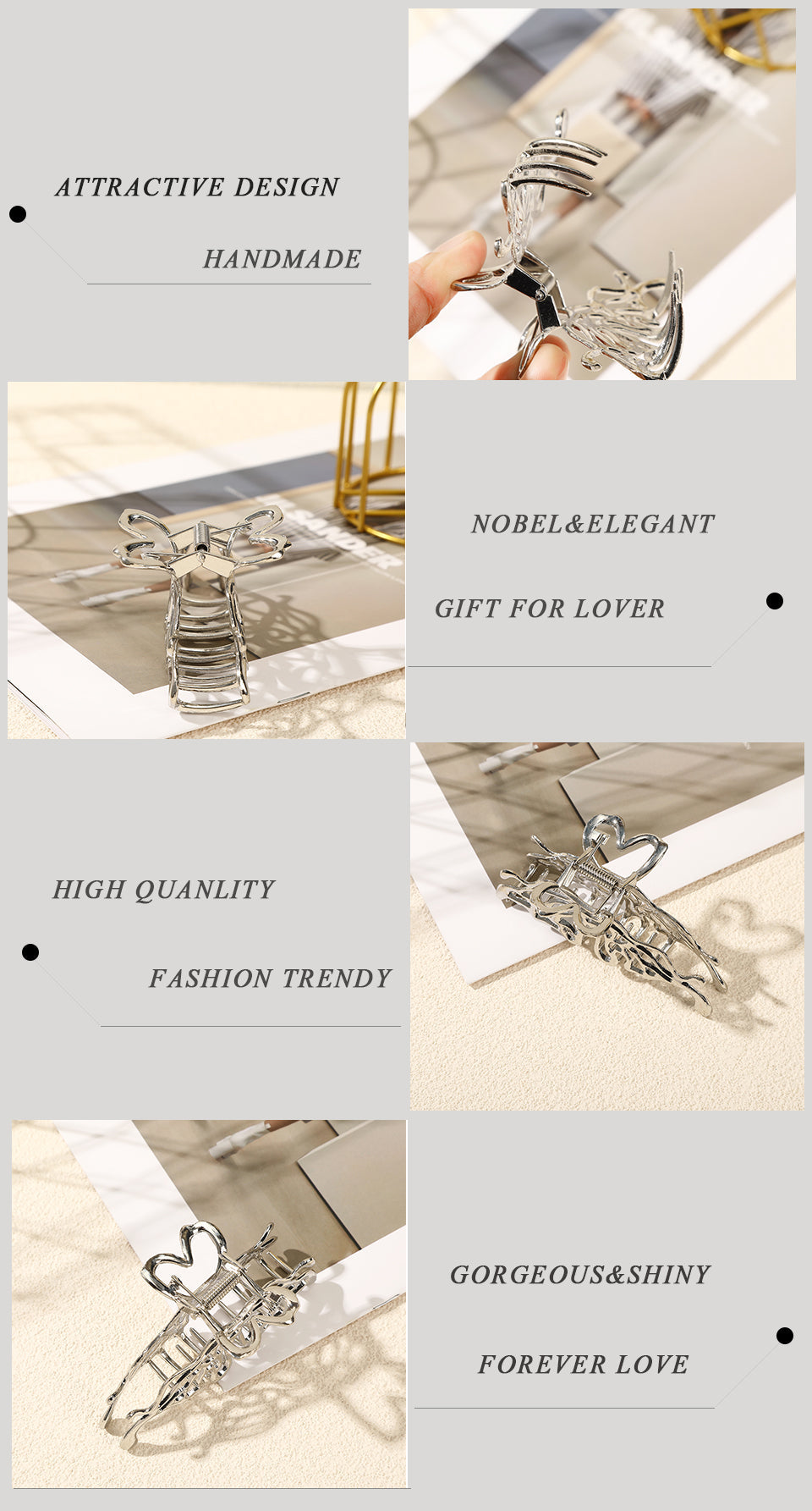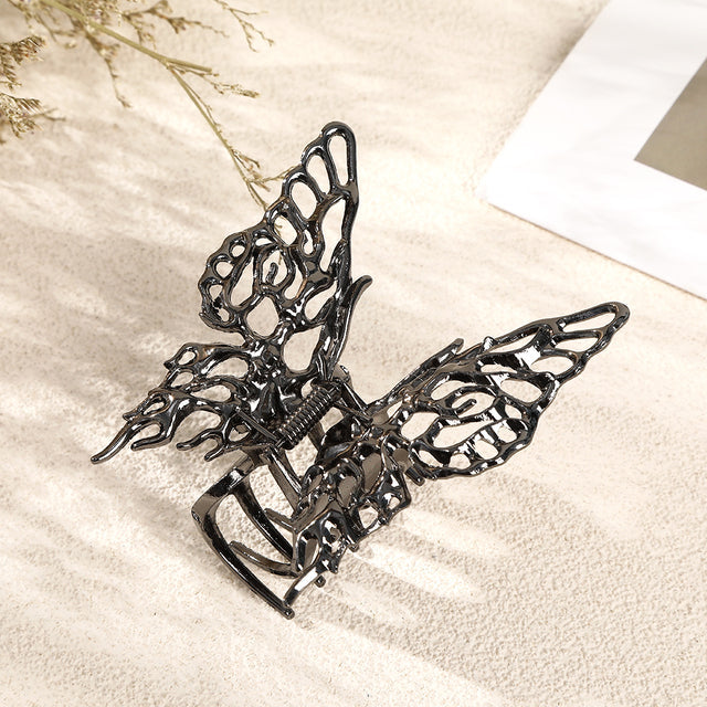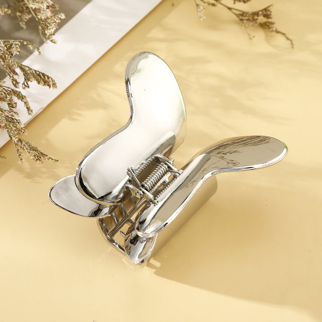Elevate your hairstyle with our Elegant Retro Metal Silver Butterfly Hair Claw, a stunning accessory designed for fashion-forward women. Crafted from high-quality plastic and satin, this chic hair clip features a unique hollow abstract butterfly design, making it a perfect statement piece for any outfit.