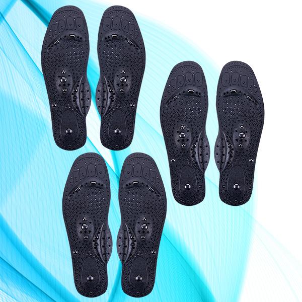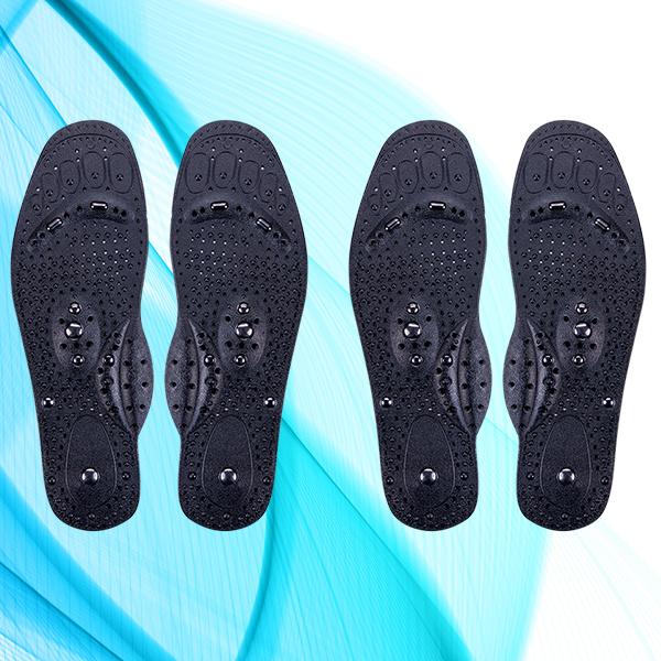 The magnets from these insoles attracts iron from blood, causing a speed up delivery of nutrients, an increase in oxygen and improving blood flow to the treated area, as well as removing toxins at the same time.