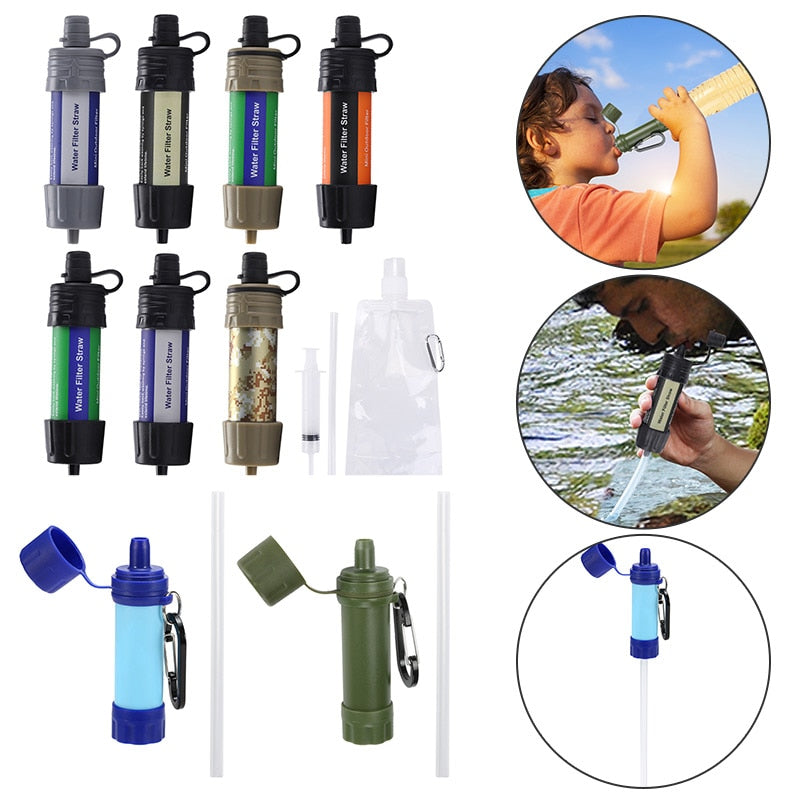 Multifunctional Outdoor Personal Wild Life Emergency Drinking Water Filtering Tools Portable Camping Hiking Life Survival Water Purifier Filter with Straw