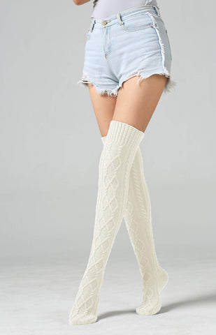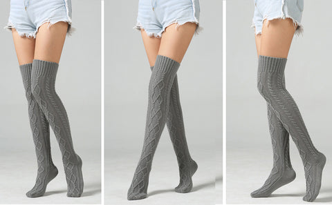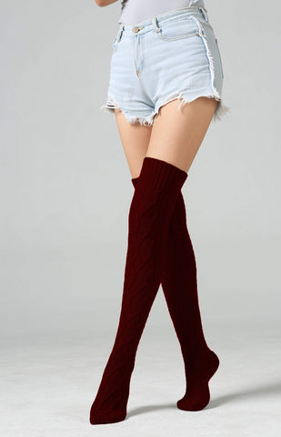 The Over The Knee Knit Socks are available in a variety of stylish colors. There's a pair to match every outfit! Choose from White, Gray, Black or Wine.
