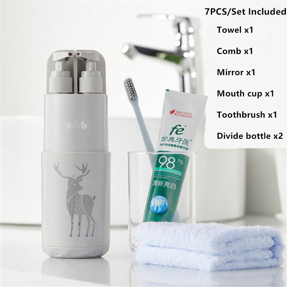 Gear up for your travels with our comprehensive Travel Wash Set, designed to streamline your toiletry needs wherever you go. Choose from our versatile 5PCS or 7PCS set, each including essential items like sub-bottles for liquids, a convenient wash cup, a sleek mirror for quick touch-ups, a durable comb, and additional must-haves such as a soft towel and toothbrush. Perfectly sized and TSA-friendly, our sub-bottles can each hold up to 45ML of liquid, ensuring hassle-free airport security checks. Stay organized and prepared for any adventure with this compact and portable bathroom companion.