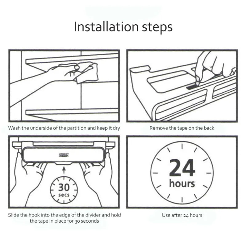 Installation is a breeze - no tools required. Simply peel off the backing and stick it on for a secure hold. Crafted from premium food-grade materials, this organizer is built to last and easy to clean. Transform your kitchen into an organized oasis with Slide-N-Savor.