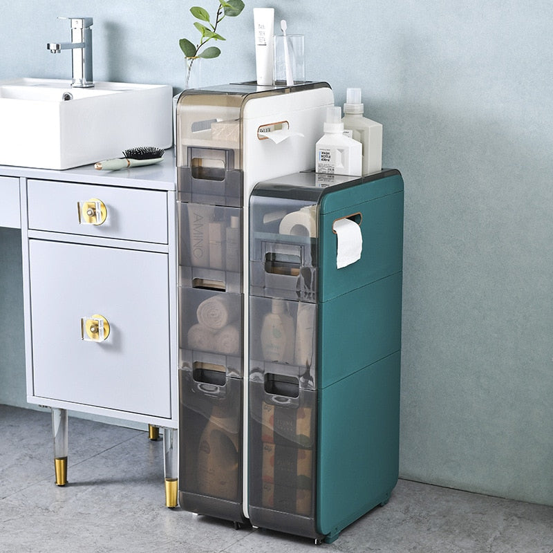 - Made of premium plastic material, which is sturdy and durable in use. Wear resistant and not easy to deform, playing a decorative role in your bathroom, this bathroom storage cabinet can be used for a very long time.