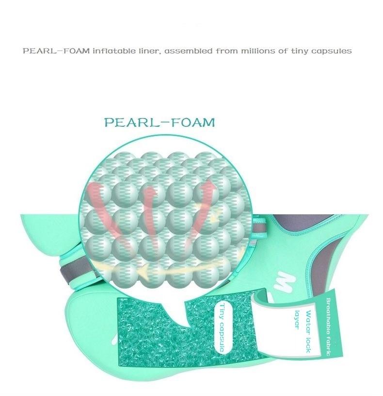 Don't waste your breath blowing those low quality inflatables. Our Smart Swim Trainer is constructed with High Quality PearlFoam™ that is moisture proof, yet extremely breathable, lightweight with superior buoyancy.