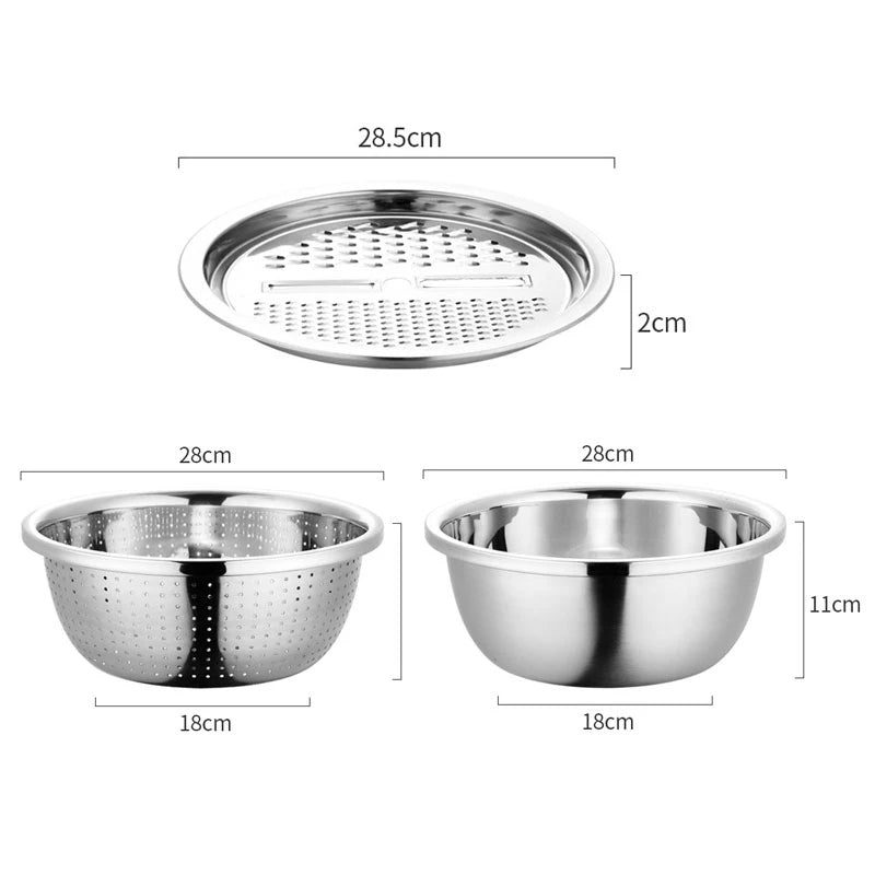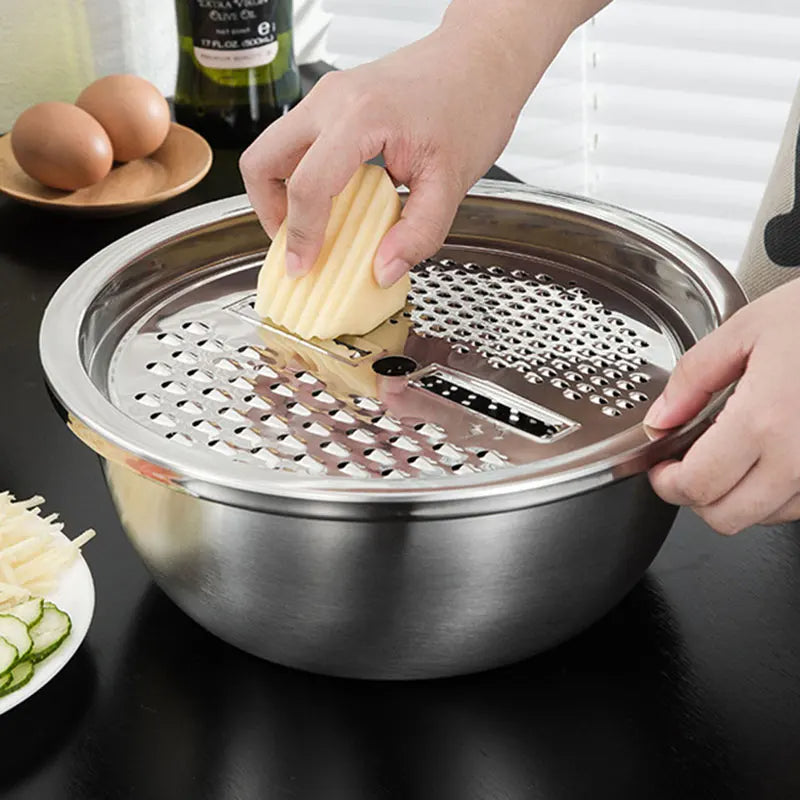 Whether you're filtering, grating, or mixing, our multifunctional set streamlines your kitchen tasks with elegance and efficiency. Prior to first use, simply wash with warm water to remove any residual production traces, and after each use, ensure thorough cleaning and drying to maintain the set's longevity and hygiene. Unlock the potential of your kitchen with our Stainless Steel Culinary Companion Set—a must-have for any culinary enthusiast.