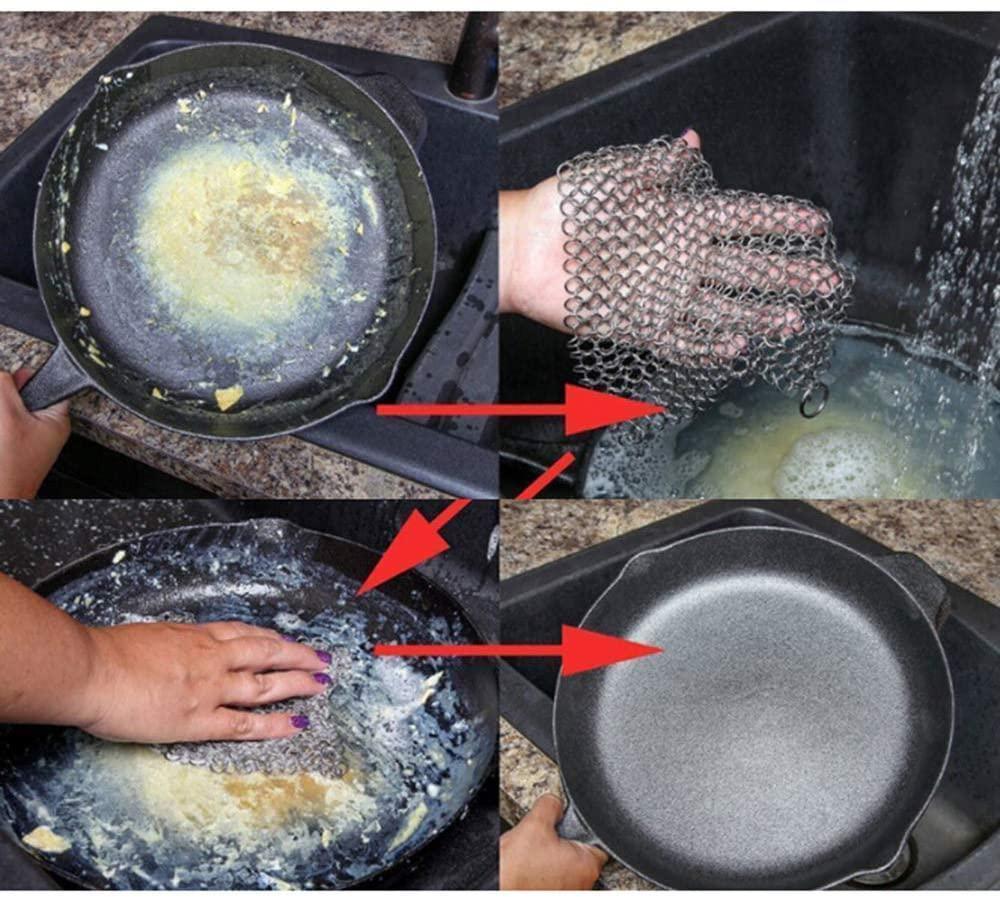 The Stainless Steel Kitchen Ring Cloth is ideal for cleaning cast iron pans and other metal objects. The stainless steel material makes it reusable and long-lasting.