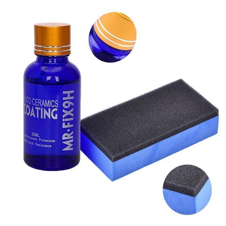 - Ensure the surface dry and clean, put the coating on the sponge (7-10 drops) and then apply evenly, horizontal first then vertical, apply on every sections and corner. No need apply it too heavy. Wait 5-20 mins (it depends on the weather of your country), then use softer and new dry microfiber to wipe off the coating which left on the surface.