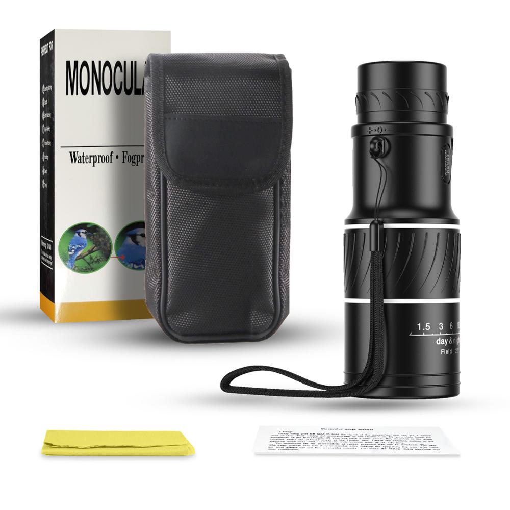 2.Latest optics technology, the HD monocular telescope equipped with BAK-4 prism and fully multi-coated lens, superior light transmission and brightness and the light transmittance reaches up to 99. 6%. Our monocular has low-light-level night vision, it could help you see things in low light (can't see anything in complete darkness), provide you a amazing viewing experience.
