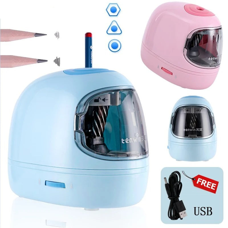 Elevate your sharpening experience with the Tenwin Round Helmet Pencil Sharpener (Article No.: 8067-3-4). This innovative sharpener, available in blue and pink, offers dual power supply options, operating either with four AA batteries or via USB for ultimate convenience.