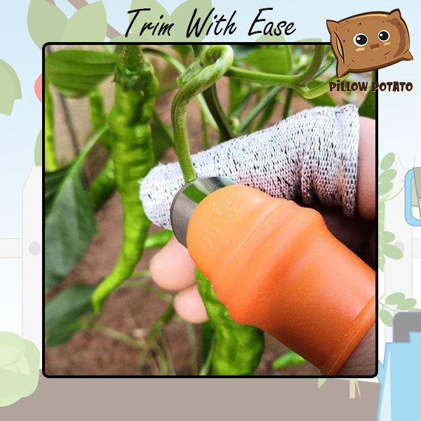 THUMB KNIFE - Conveniently use your thumb to prune branches and cut stalks. Equipped with stainless steel thumb knife in arc blade design that conforms to the shape of the thumb.