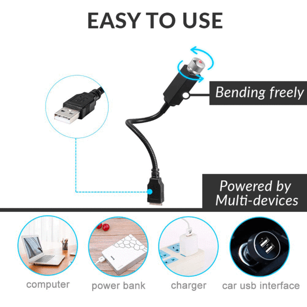 Adjust any project direction of interior car lights by bending freely design. - Powered by Many Devices