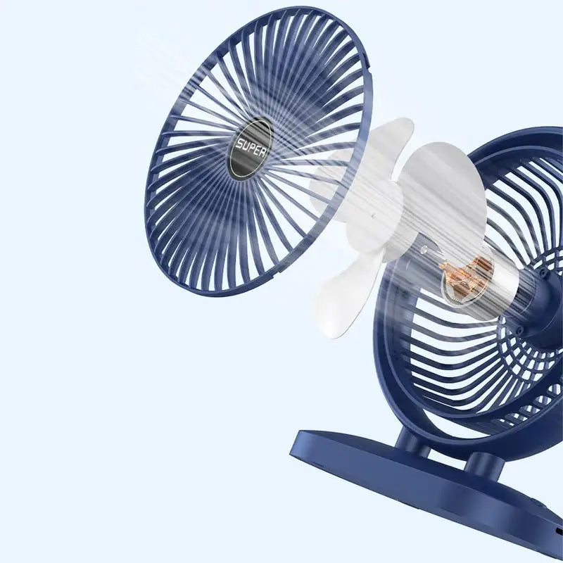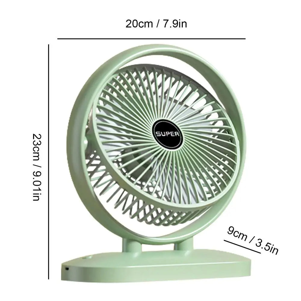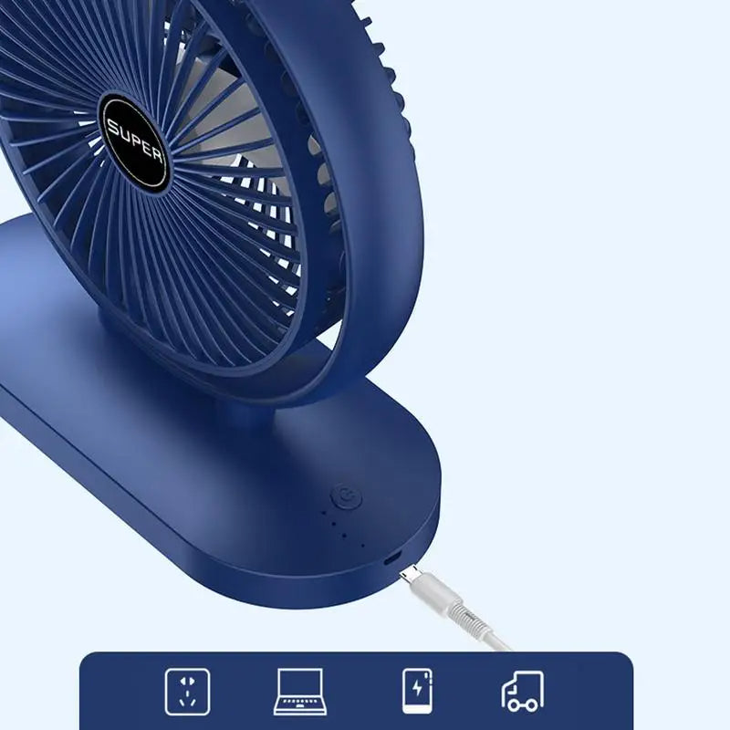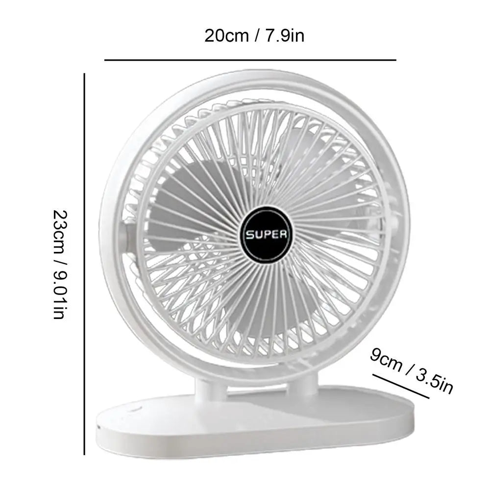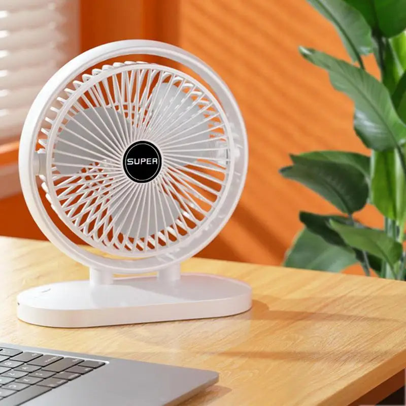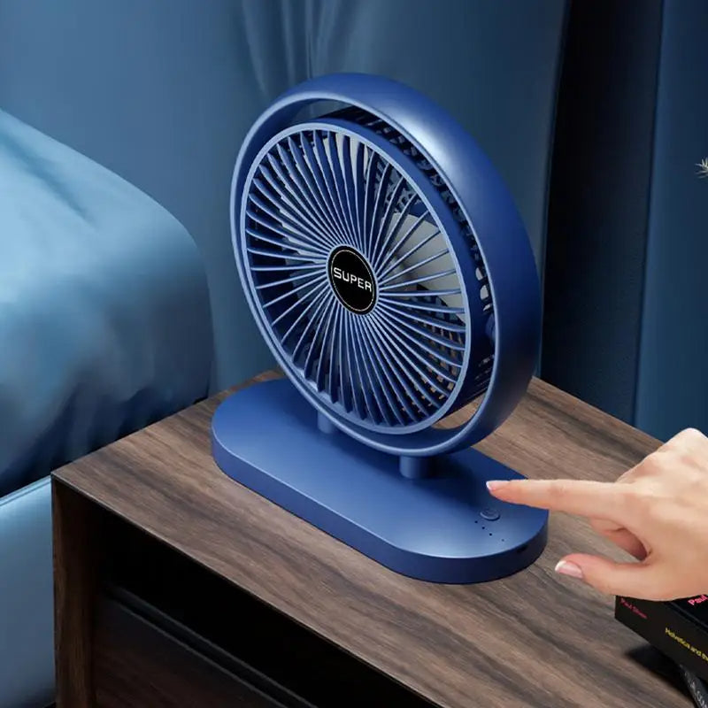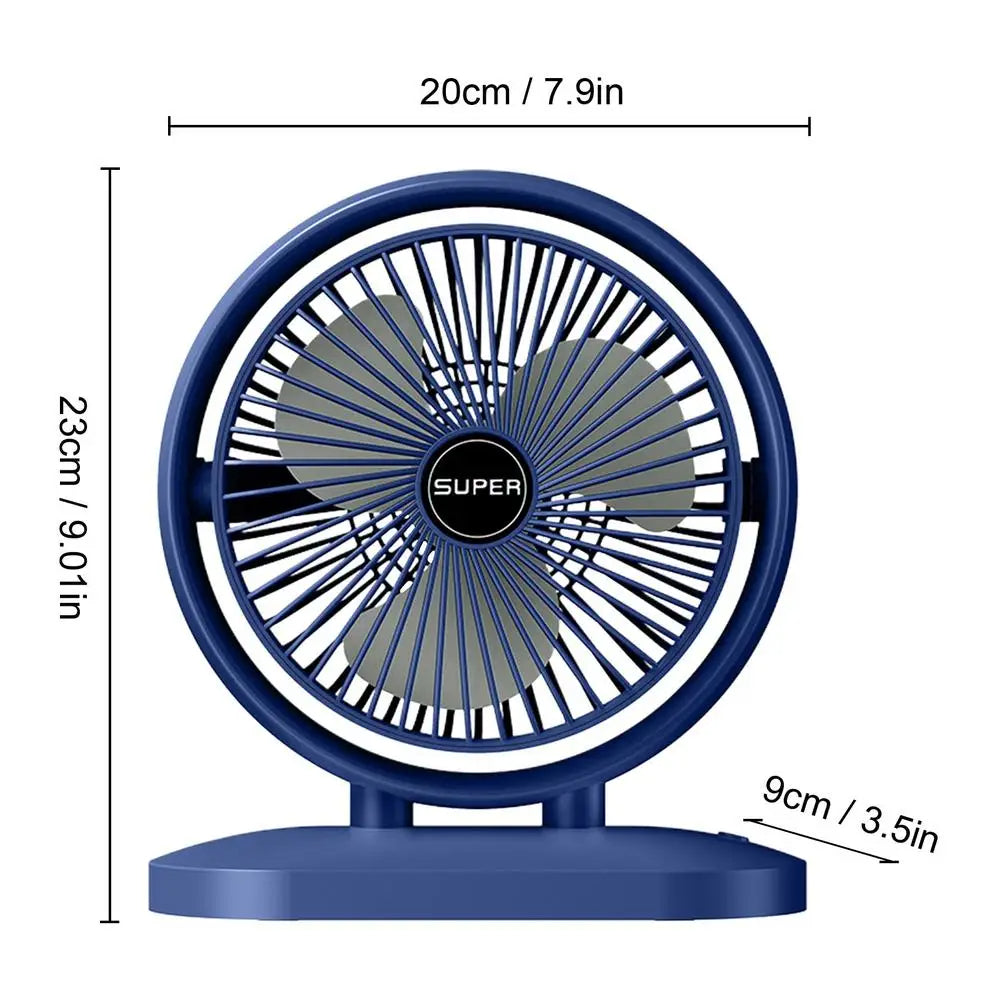 Details: Stay cool and refreshed with the BreezeMaster USB Rechargeable Table Fan. Its compact size ensures it fits seamlessly into any space, providing broad and even wind coverage. The built-in high-efficiency battery guarantees long-lasting, low-noise operation, making it ideal for any environment.